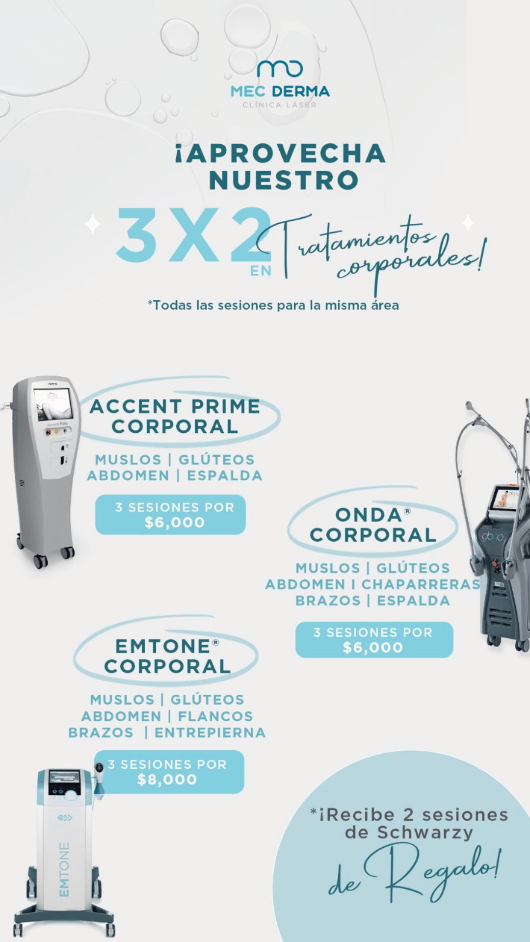 PROMOCIÓN VÁLIDA PARA PAGOS REALIZADOS DEL 2 AL 31 DE MARZO DE 2026. VIGENCIA DE REALIZACIÓN DE LOS SERVICIOS: 31 DE DICIEMBRE DE 2026. PROMOCIÓN INTRANSFERIBLE. NO SE ACEPTAN CAMBIOS NI DEVOLUCIONES. LIMITADO A 3 SESIONES POR PACIENTE.